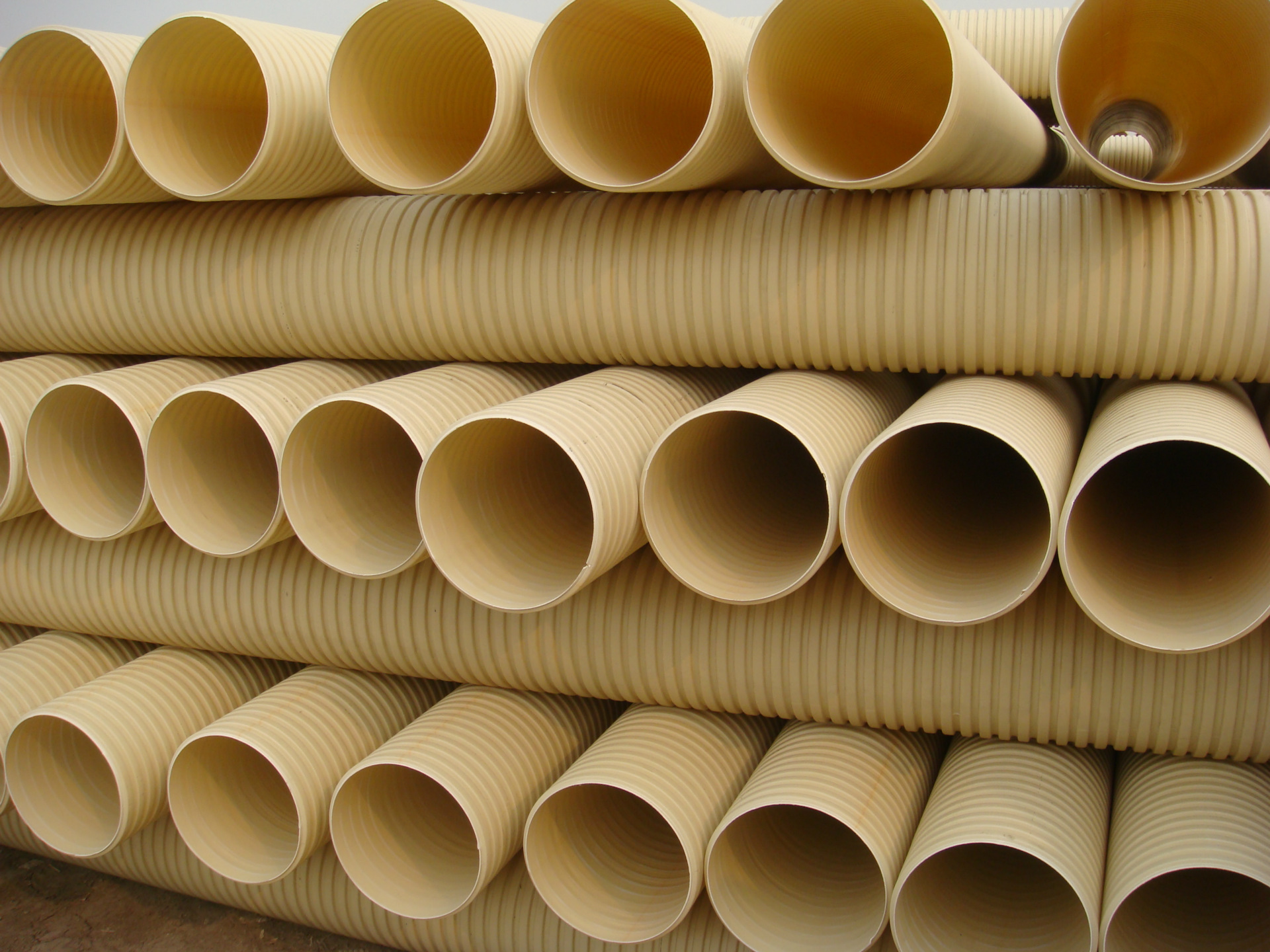 PVC-U雙壁波紋管是以UPVC聚氯乙烯為主要原料,分別由內(nèi)、外擠出機(jī)頭共同擠出,一次成型,內(nèi)壁平滑,外壁呈梯形波紋狀,內(nèi)外壁之間有夾壁空心層的塑料管材。產(chǎn)品具有環(huán)剛度高、強(qiáng)度大、重量輕、隔音減震,較高的抗紫外線穩(wěn)定性,使用壽命長(zhǎng),彎曲性好,耐壓,抗沖擊強(qiáng)度高等多種優(yōu)點(diǎn)?煞笤O(shè)在地質(zhì)較差的路段,而且密封性能好,施工快捷。