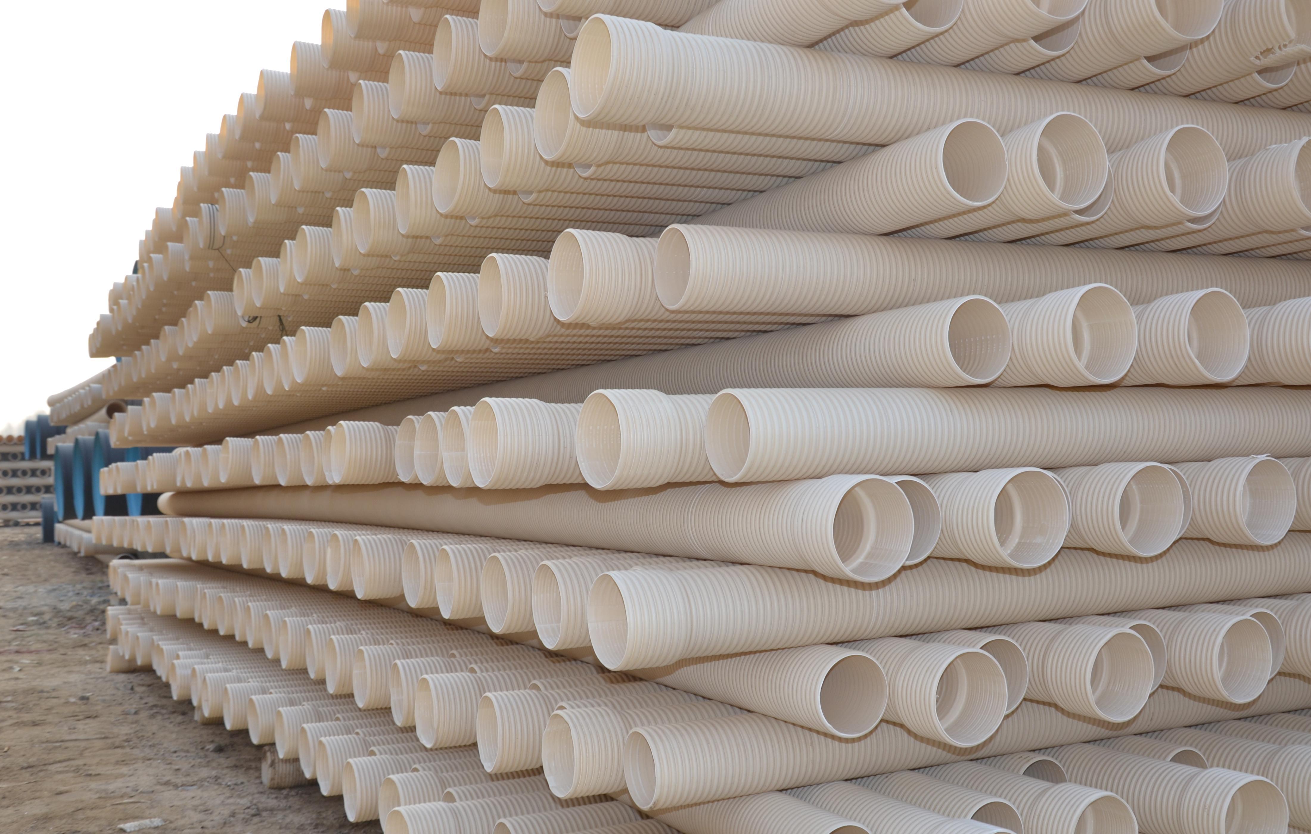 PVC-U雙壁波紋管是以UPVC聚氯乙烯為主要原料,分別由內(nèi)、外擠出機(jī)頭共同擠出,一次成型,內(nèi)壁平滑,外壁呈梯形波紋狀,內(nèi)外壁之間有夾壁空心層的塑料管材。產(chǎn)品具有環(huán)剛度高、強(qiáng)度大、重量輕、隔音減震,較高的抗紫外線穩(wěn)定性,使用壽命長(zhǎng),彎曲性好,耐壓,抗沖擊強(qiáng)度高等多種優(yōu)點(diǎn)?煞笤O(shè)在地質(zhì)較差的路段,而且密封性能好,施工快捷。